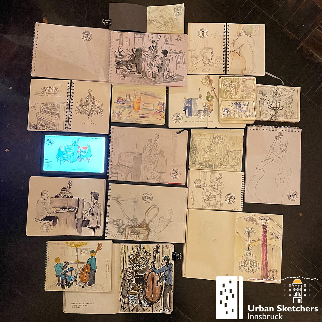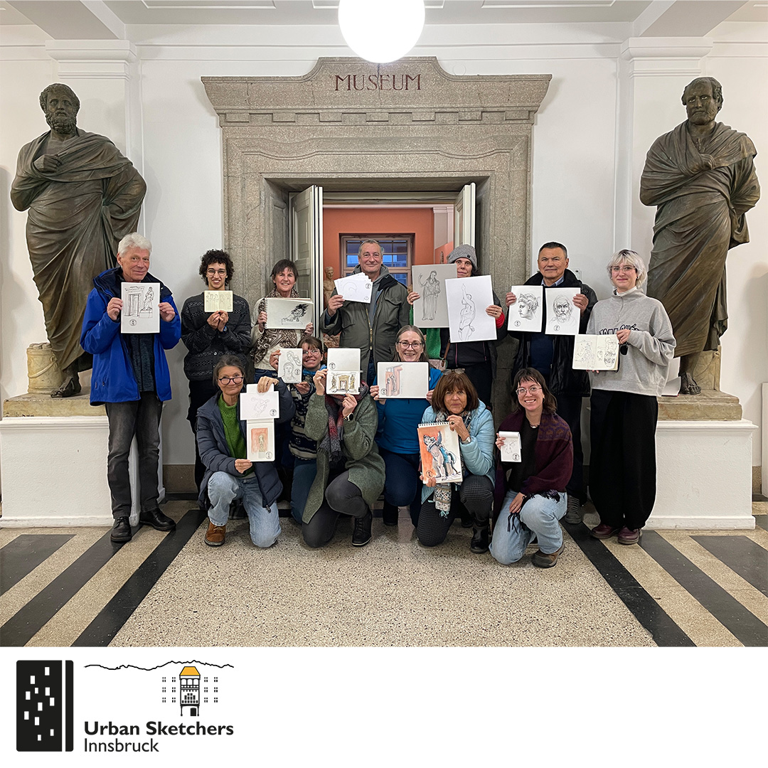 Seit August 2024 treffen sich die Urban Sketchers Innsbruck zum gemeinsamen Zeichnen. Wir möchten Innsbruck direkt vor Ort und durch die direkte Beobachtung zeichnen oder malen. Dabei besuchen wir bekannte und versteckte Plätze in Innsbruck und wollen die Stadt, ihre Menschen und ihre Berge authentisch in Form von Skizzen festhalten. Wir zeichnen sowohl draußen auf den Plätzen als auch drinnen in Kaffeehäusern und Museen.